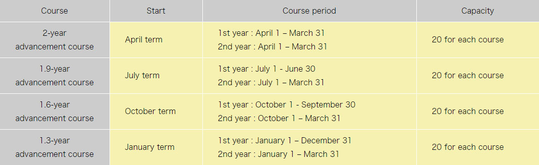 April term | 1st year :April 1 – March 31 2nd year :April 1 – March 31 |